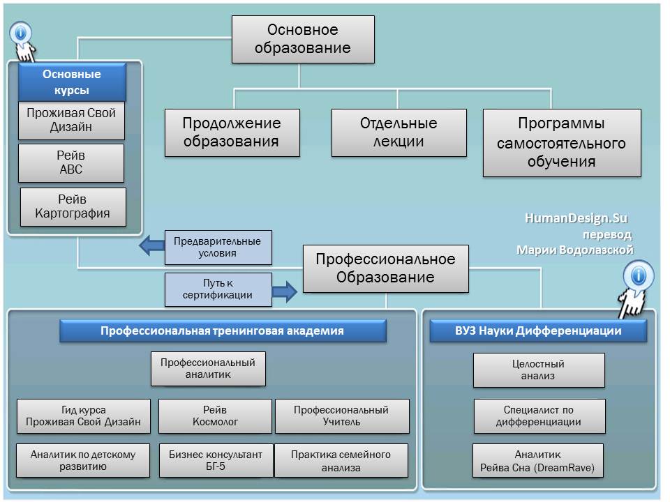 Для начала посмотрите на эту табличку. Пусть она вам чем-то поможет. На ней указаны разные курсы. Образование в системе Дизайн Человека начинается с трех основных: Проживая Свой Дизайн, Рейв ABC, Рейв Картография (именно в такой последовательности). Параллельно можно самообразовываться, прослушивая дополнительные материалы и читая книжки — электронные версии можно купить на сайте jovianarchive.com — на английском. На русском тоже есть учебники, их можно купить дополнительно к указанным курсам. Также можно приобрести русский перевод книг «Дизайн Человека Наука Дифференциации» Линды Баннел и «Основы Дизайна Человека» Петера Шобера.